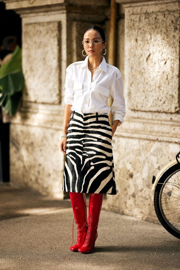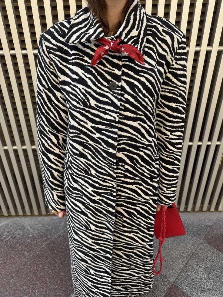 The ultimate cool-girl brand, Khaite, has sprinkled striped animal prints throughout its Resort 2026 collection - and if they’re doing it, it’s gonna be everywhere. In typical Khaite fashion, it’s restrained rather than literal and I love how they’ve teamed it denim, florals, silks, and then just added a pop.